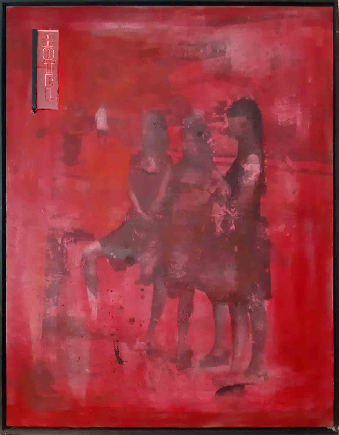 83,5×65,5cm photo emulsion, pigment colors, engraved acrilyc,led lights on canvas