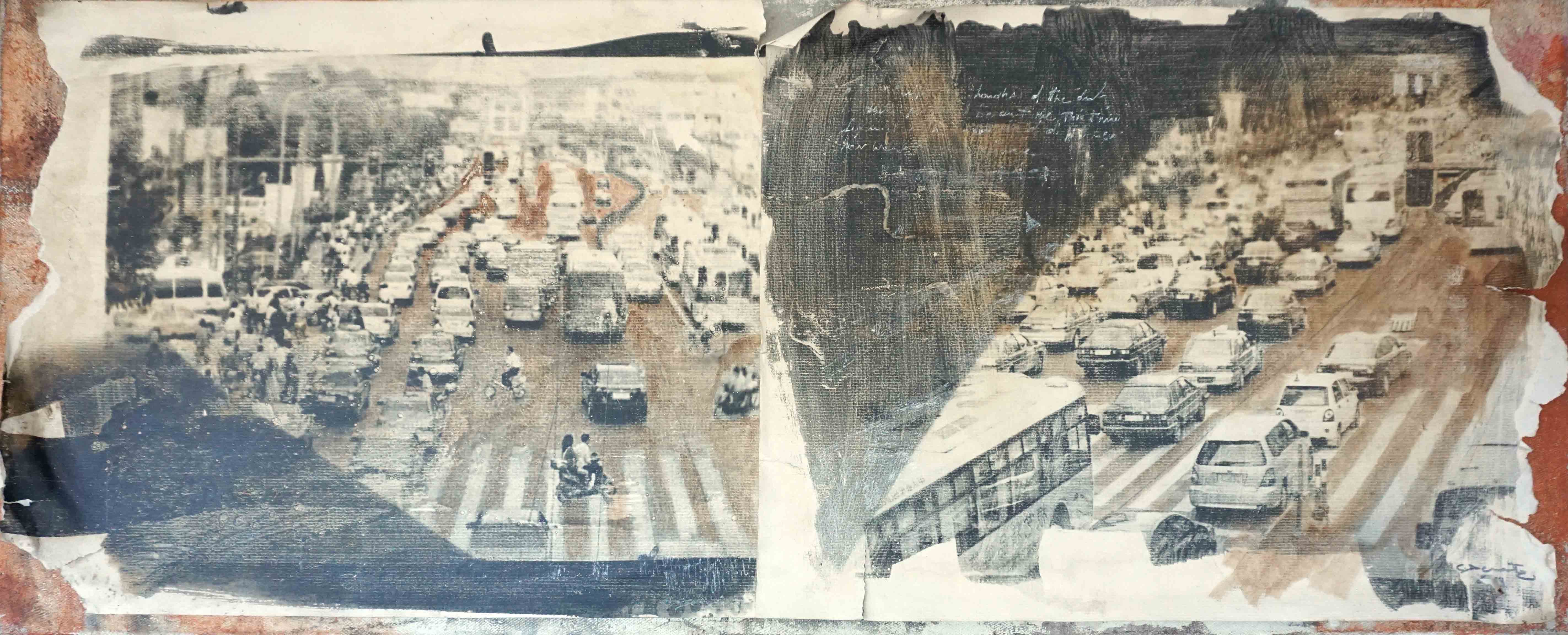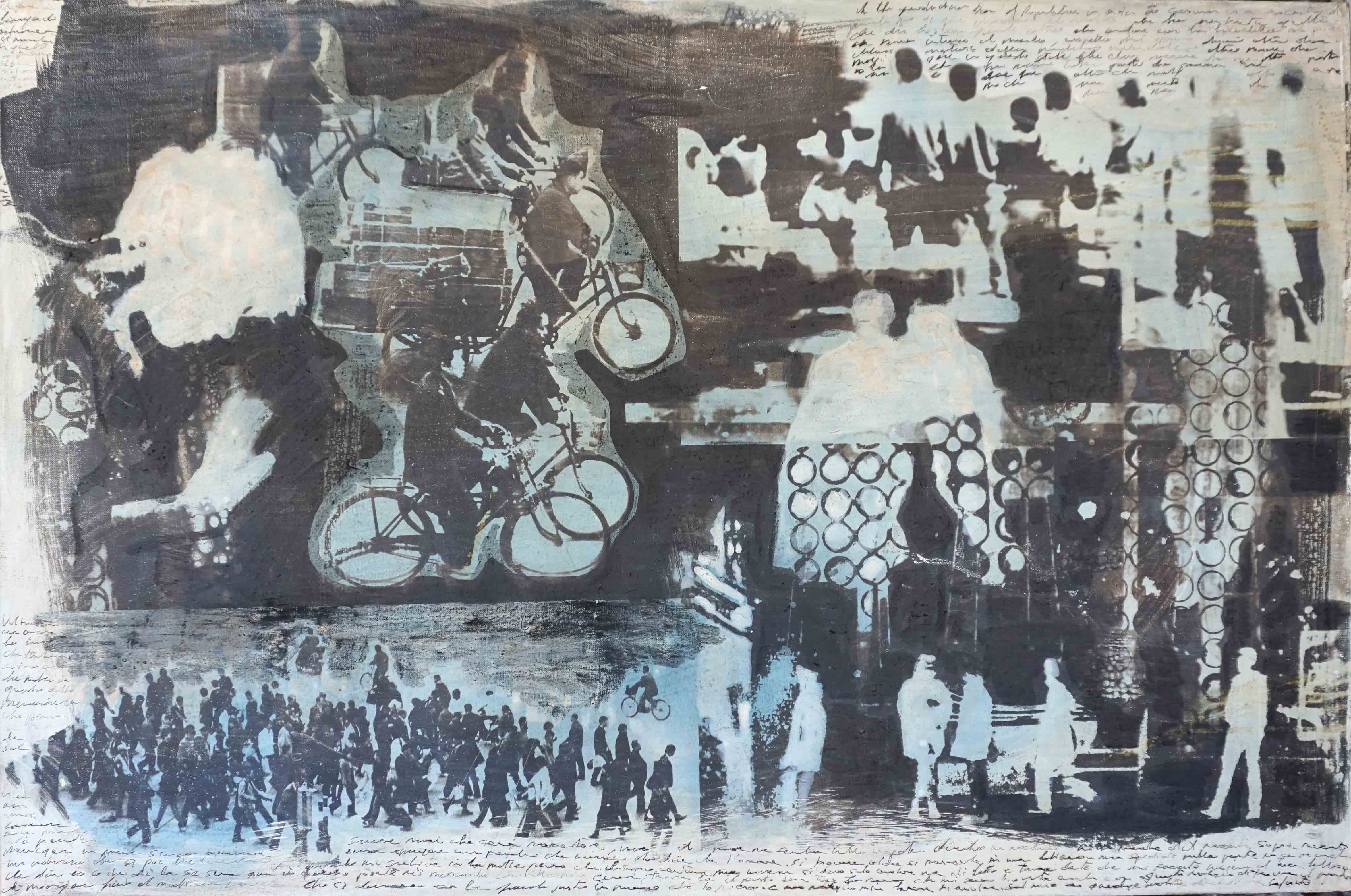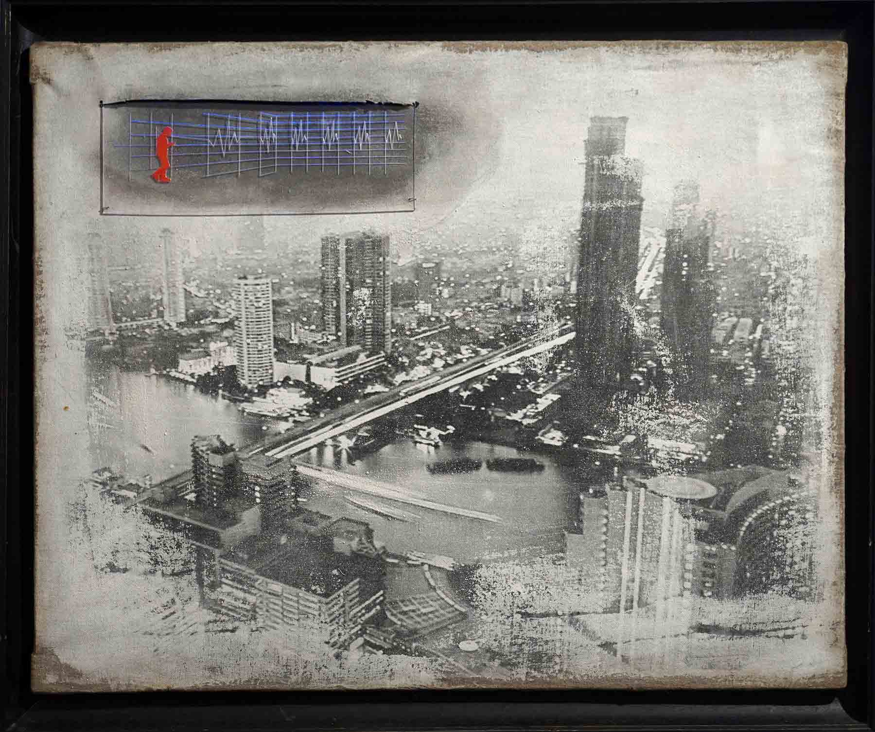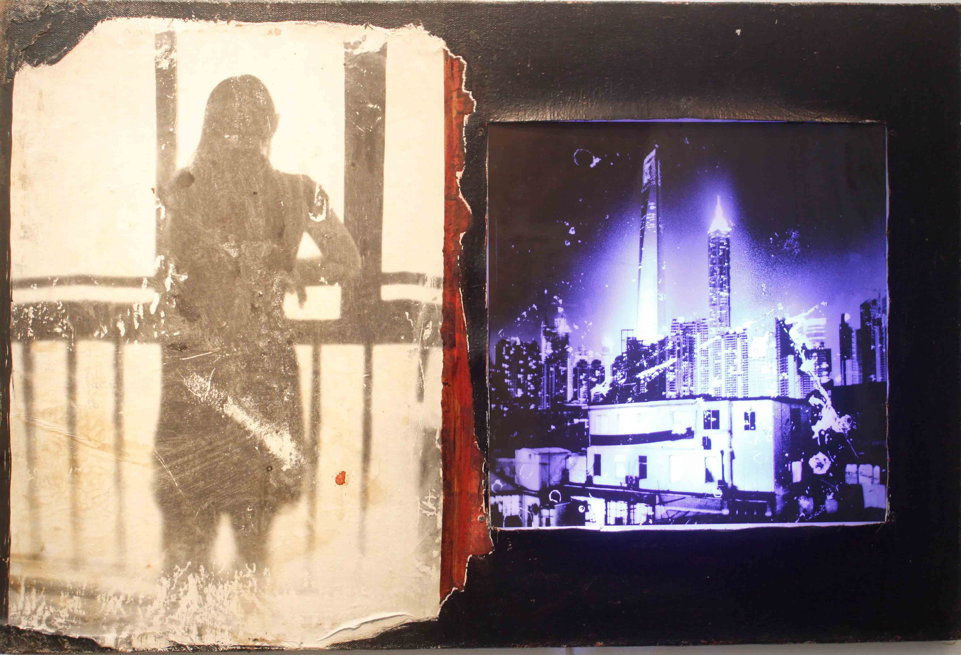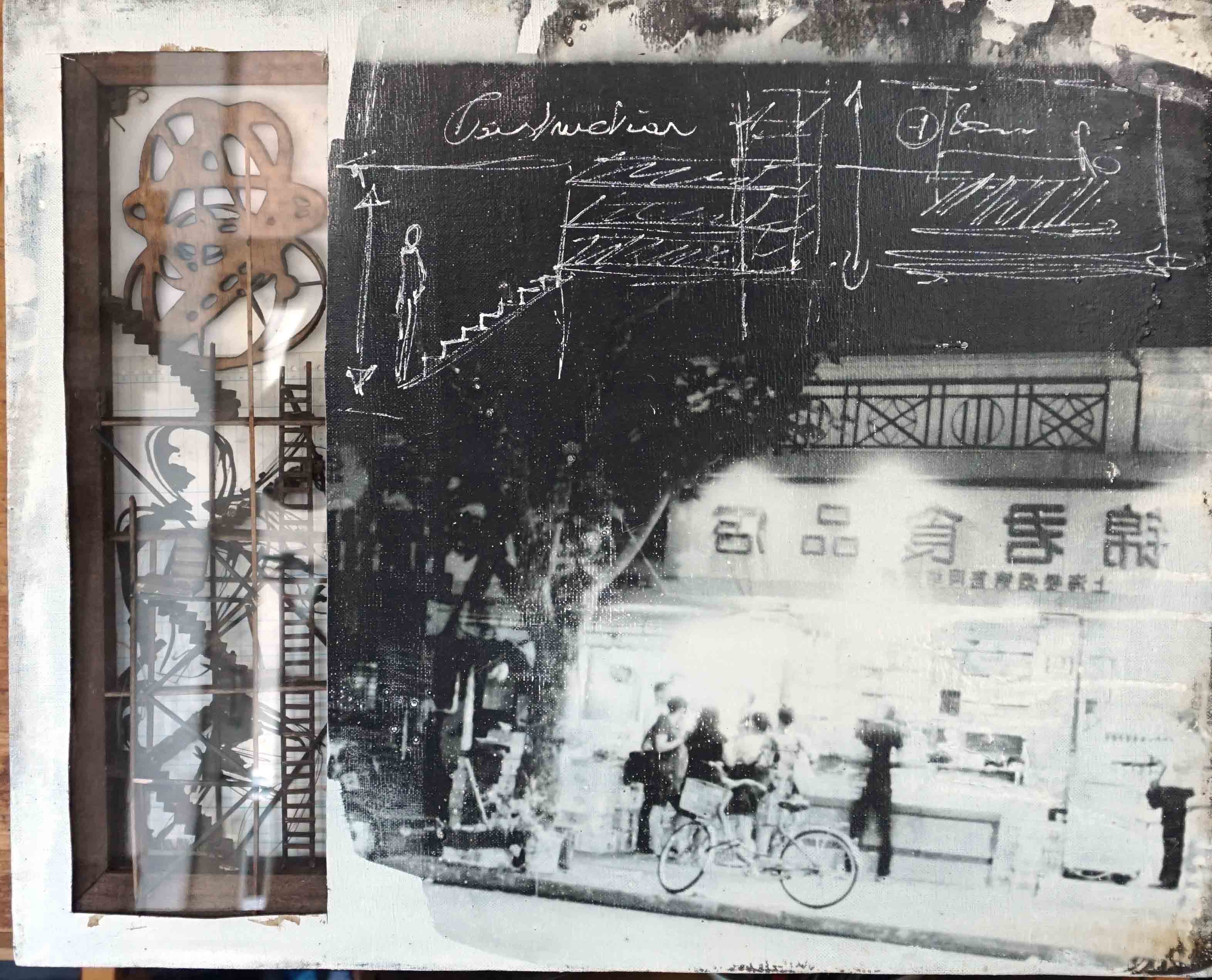 60x50cm photo emulsion ,sketch and wood construction on canvas