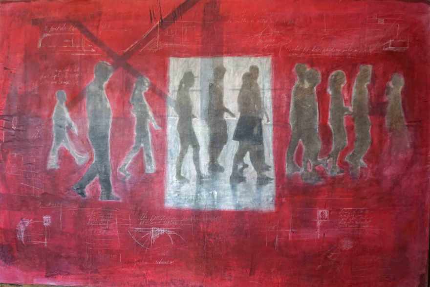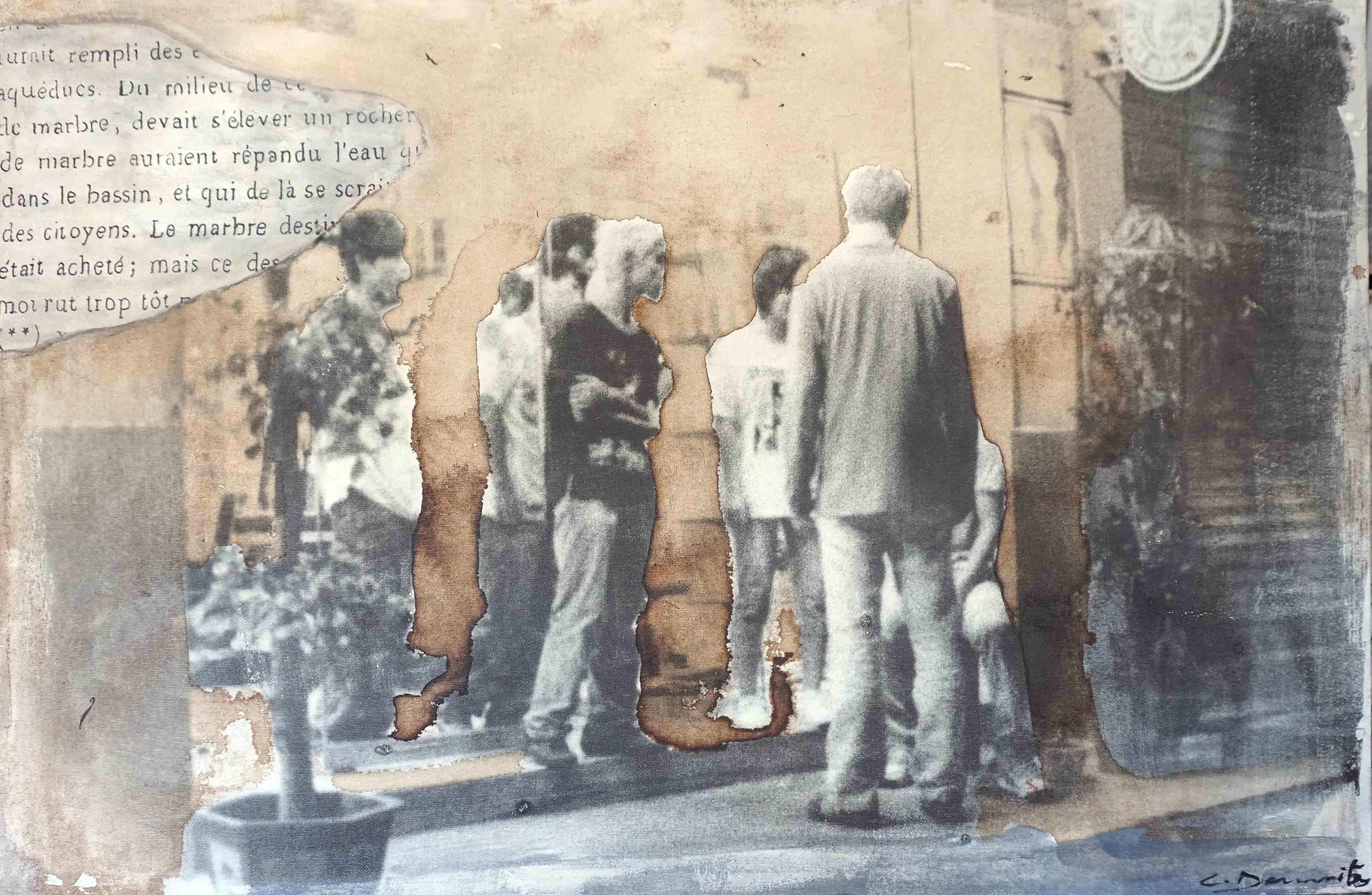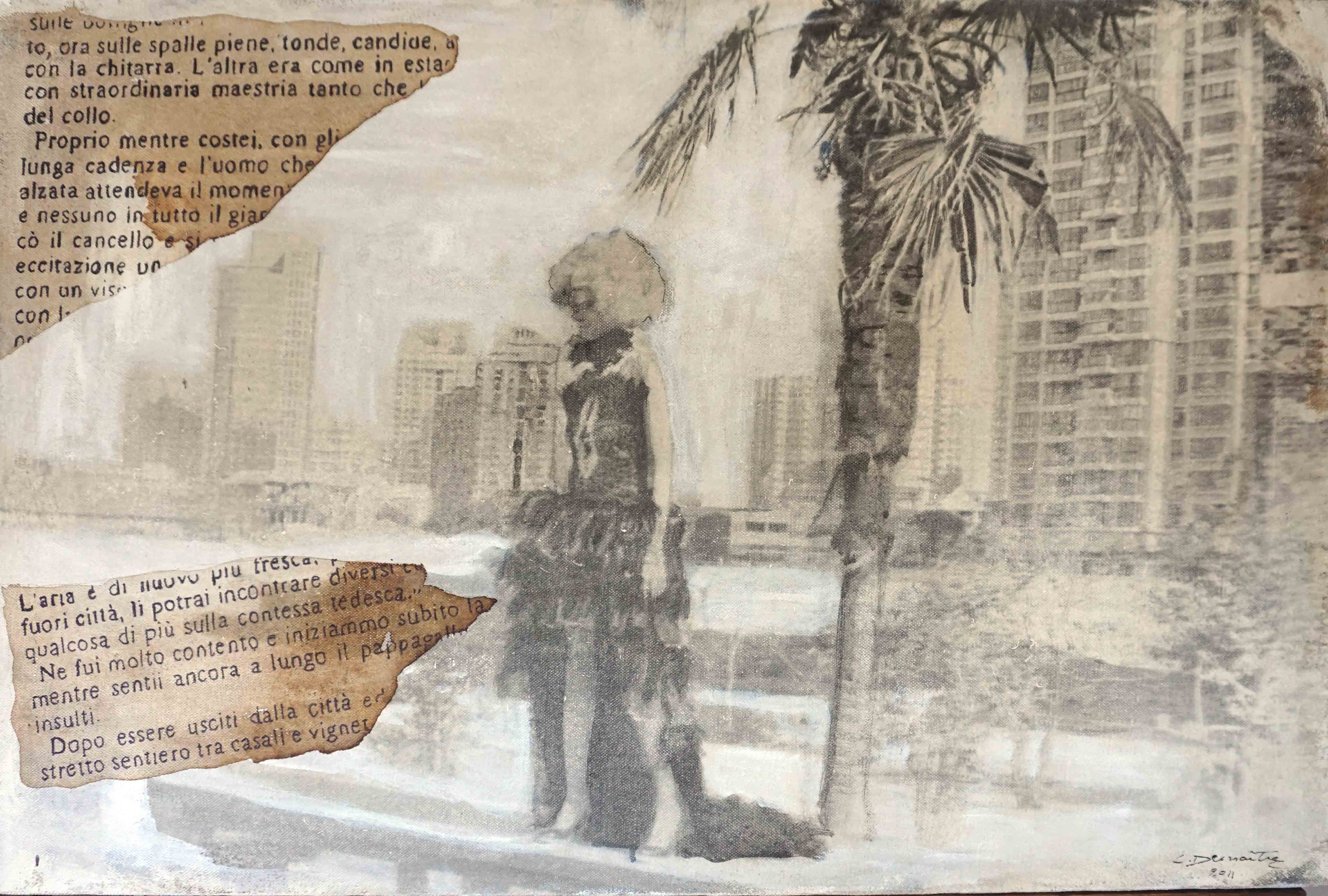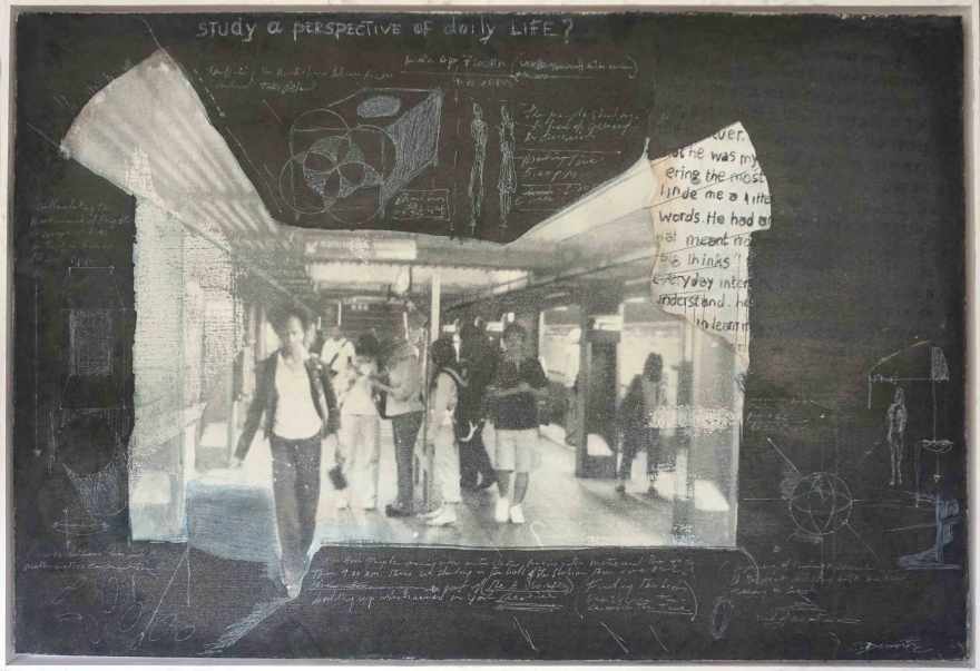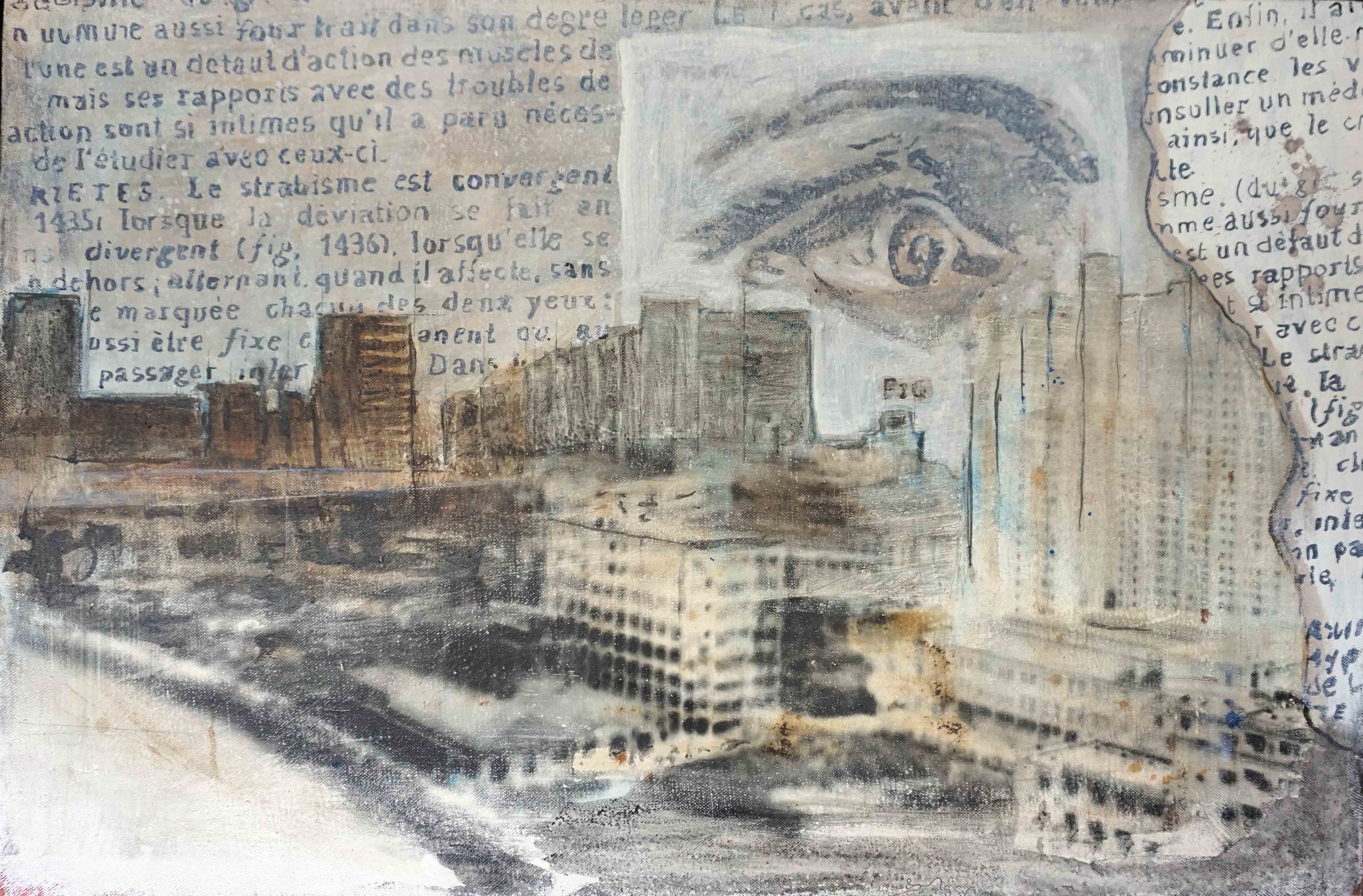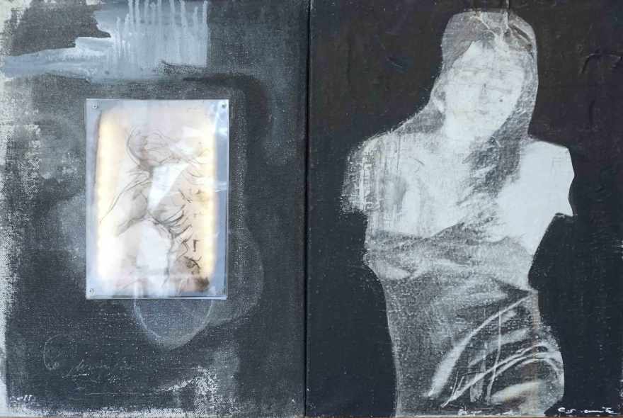 60x50cm photo emulsion ,sketch and wood construction on canvas