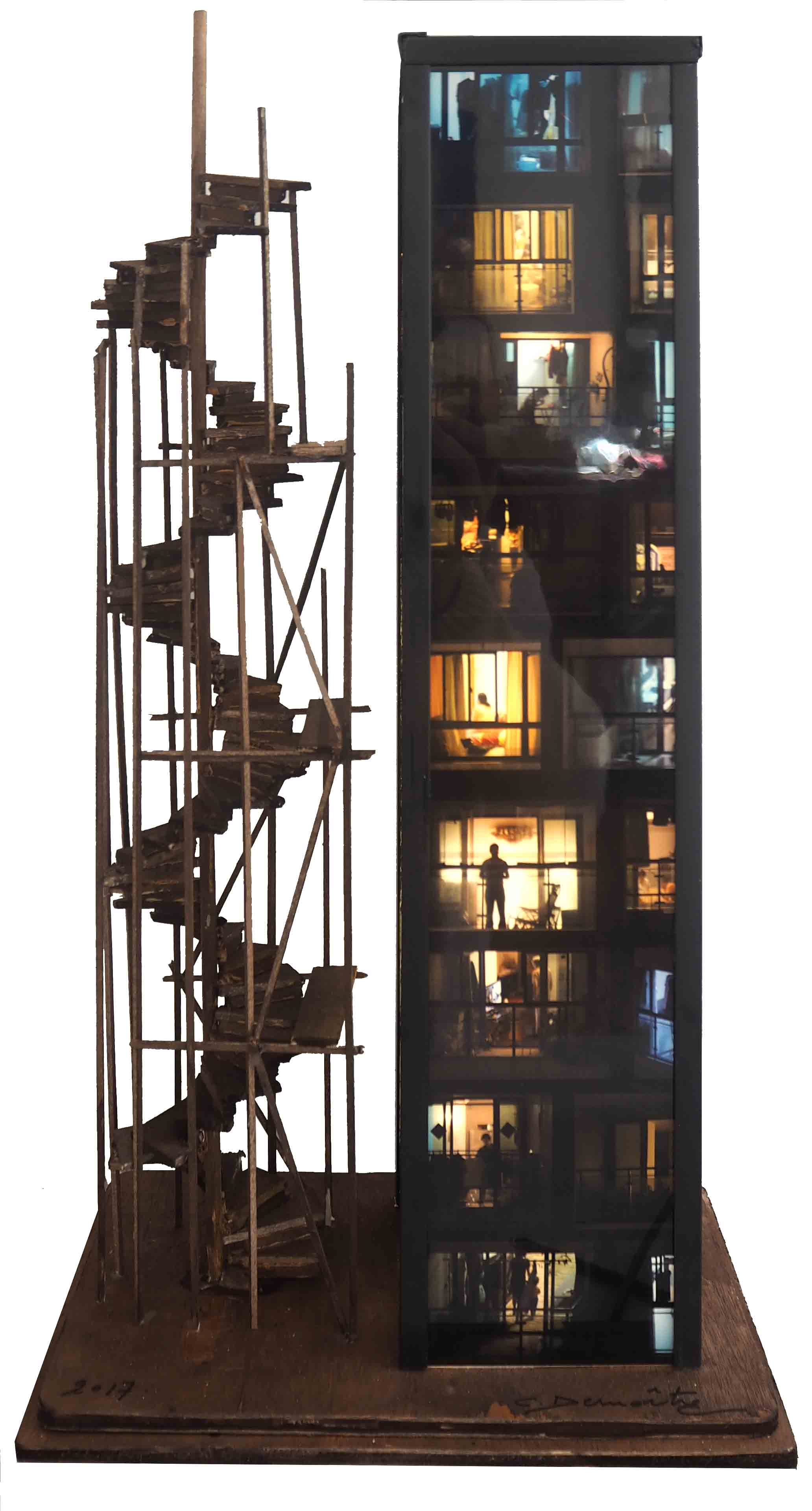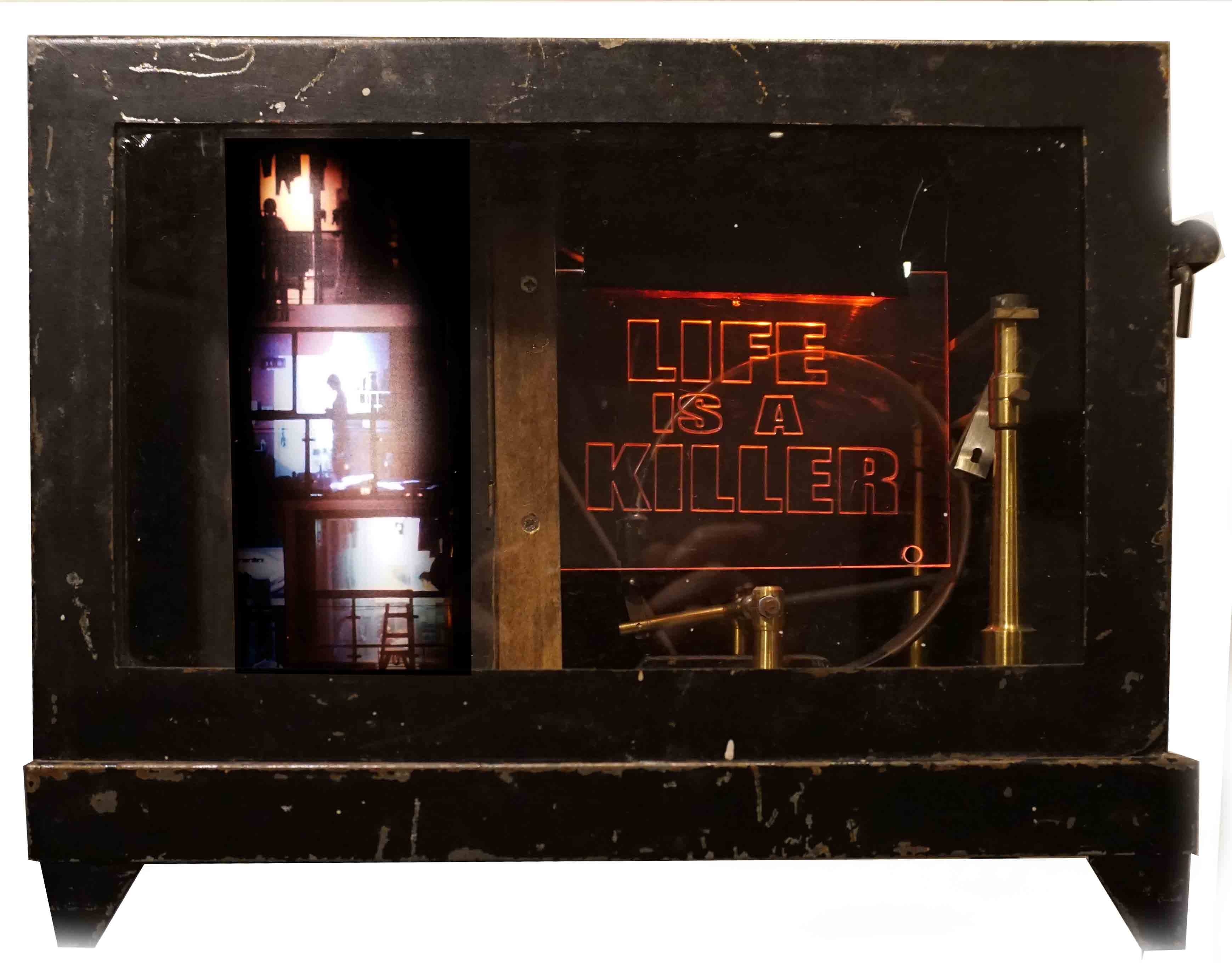 assemblage ,engraved plexi ,photo,Led 39x24x16cm